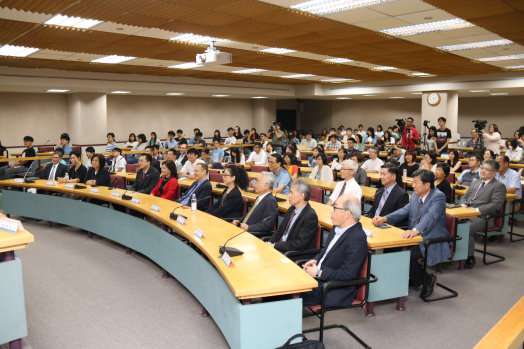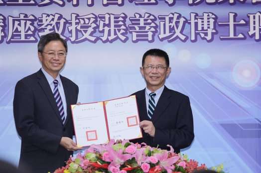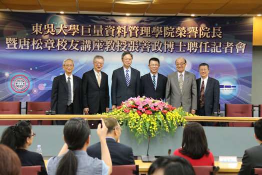 本校105學年度禮聘前行政院院長張善政博士擔任巨量資料管理學院唐松章校友講座講授兼榮譽院長,協助本校擘劃大數據領域之教學、學術研究及產學合作之發展,並於9月21日下午2時於外雙溪校區舉行聘任記者會。
