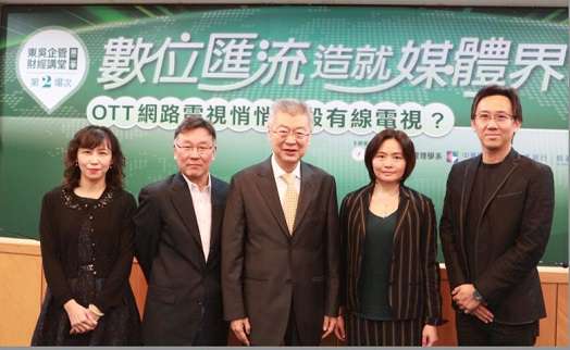本校企業管理學系於2016年11月30日(週三)舉辦第二季「東吳企管財經講堂」,第二場次主題是《數位匯流造就媒體界Uber,OTT網路電視悄悄獵殺有線電視?》,由東吳大學法商講座教授陳冲擔任主持人,邀請前NCC委員,現任清華大學科技管理學院副院長彭心儀、愛奇藝台灣站總經理楊鳴、年代網際世紀公司副總經理常立欣與企管系歐素華老師,共同探討OTT網路電視對有線電視、電信公司、與其他業者的衝擊與因應之道。