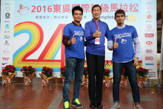 享譽國際的「2016東吳國際超級馬拉松賽」將於明日12月3日登場, IAU總會代表日本領隊井上明宏、2017台北世大運學生資源處吳金盛處長、瑞士銀行台灣區總經理陳允懋,以及中信兄弟職棒明星王勝偉及張志豪,皆在記者會上為明日的賽事予以支持與鼓勵。