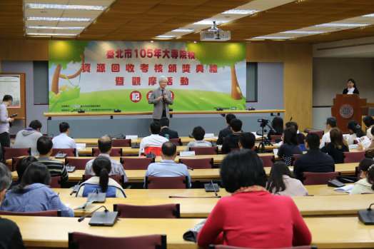 近年來隨著經濟多元發展,生活的環境也遭受到了嚴重汙染,環保議題已成了一項非常重要的世界議題。臺北市環保局於105年8月至10月間辦理大專院校資源回收考核計畫,並在106年1月6日上午10時於本校外雙溪校區的國際會議廳舉辦「資源回收考核頒獎典禮暨觀摩活動」。