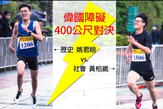 今年田徑賽的重頭戲就是男子400公尺競賽,去年由社會系黃柏崴同學以54秒11的成績,打破高懸36年企管系72級吳偉國學長創下的55秒「偉國障礙」,而全校800公尺紀錄保持人—歷史系姚君翰同學誓言刷新紀錄,預期此項賽事將在觀眾的目光與加油聲下再創佳績。