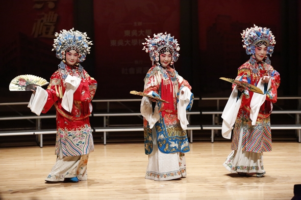 接著由校友國劇社初次演出全新劇目:龍鳳呈祥,共有五位校友分別演繹許多國劇中的經典橋段,令人身歷其境。而後,穿著華美服裝的三位旦角(國劇中角色分為四種:生旦淨丑) 以小碎步的方式登台演出。其唱腔清脆宛轉,微笑時羞澀、轉身時優雅,利用手中之扇或水袖傳遞其角色之美,兩者相得益彰,使台下觀眾聚精會神、仔細觀賞。