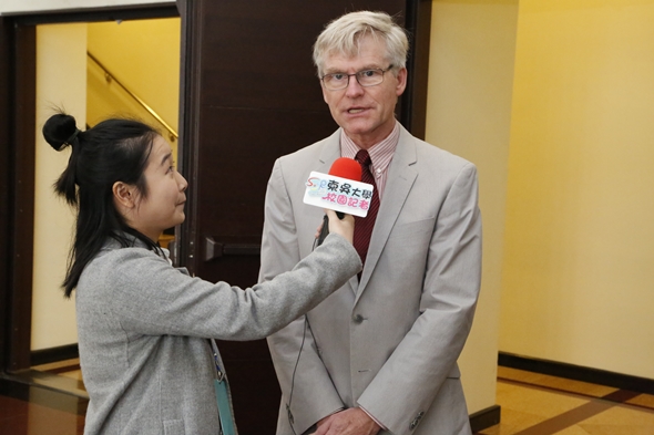 現場有位特別嘉賓,是遠道而來的美國東吳之友基金會會長Edward Rada先生,他表示,東吳的硬體設施十分完善,他很欣慰能看到學校不斷為改善學習環境、豐富學習資源做出努力。東吳之友基金會由Edward L. Rada博士於1963年創辦,他為東吳奔走募集資金及書籍、設立6項各院學術獎學金。Rada博士為東吳無私付出40年多年,直到身體狀況不允許而停止,現在他的兒子Edward Rada也加入了東吳之友更擔任會長。Edward Rada會繼續將父親對東吳的奉獻傳承下去,協助東吳邁向更好的發展。