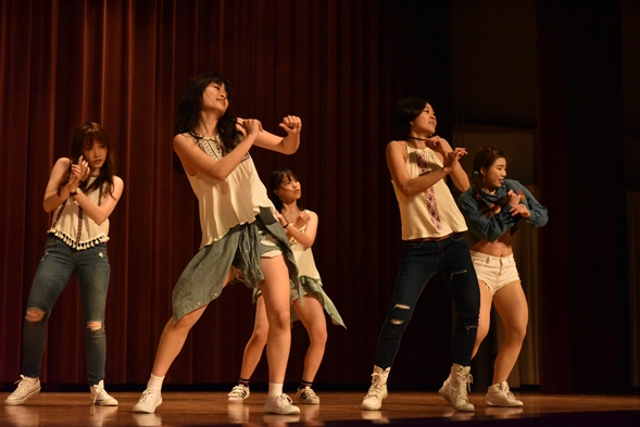 率先出場的選手團名為π’s(拍子),九位團員繽紛的髮色與紅白配色的服裝,加上小蓬裙和及膝襪,搭配日文輕快的曲風,整體顯得青春可愛又活潑。接著,第二組由熱舞社五名女社員組成,衣著搭配白色及牛仔元素出場,組曲風格使舞蹈既能扭動性感,亦能配合節拍使力停頓。