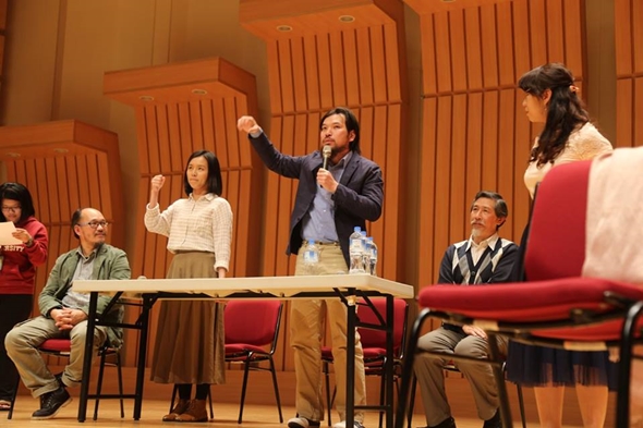 場燈一亮,台上演員各個手持劇本,難道是記不住台詞嗎? 導演陳佳穗親自解說,有別於廣播劇或完整製作的戲劇作品,「讀劇」演出減輕演員背劇本的壓力與公式化,能在舞台上有真實的交流互動,在閱讀劇本與肢體表演中將整部戲立體化。劇中演員示範演出《凡尼亞舅舅》部分段落,眼神交流與舞台走位都默契十足,把俄國作家契訶夫筆下的莊園小人物生動詮釋。陳導演也邀請現場觀眾上台體驗讀劇表演,不擔心忘詞,放手呈現角色,學習用身體去延伸劇本。