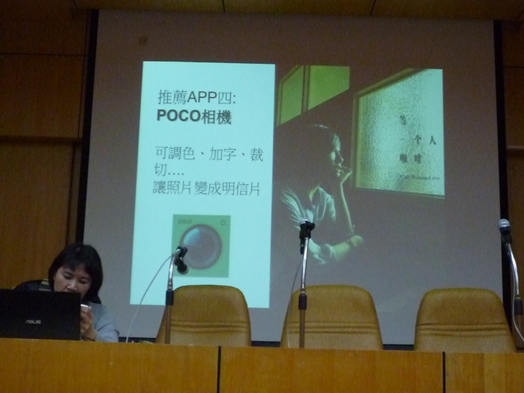 第三階段的軟體編修,小路老師使用簡易上手的手機APP,親自向同學示範各種編修技巧及方式,讓同學實際動手操作內建的功能,使後製效果達到專業相機及更豐富多元的層次。以背景襯托出畫面的主體、展現動態感的對比,提升作品的生命力。更以投影片及粉絲專頁中的照片一一講解,使用哪些工具以及調整哪些地方,小路老師以自己所拍攝的照片驗證「只要定義自己的作品,便能擁有自己的風格。」
