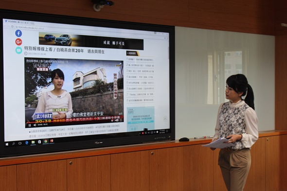 本校校園記者自成立至今已來到第三屆,除定期舉辦各樣課程增進記者們的能力值,亦會邀請知名記者、主播到校,教授新聞相關技巧。4月28日這天,校園記者研習課程「新聞播報大哉問」,是繼本學期年代電視台參訪後的第一堂課程,邀請到TVBS主播華舜嘉,為記者們分享自身經歷、傳授新聞播報與製作技巧。