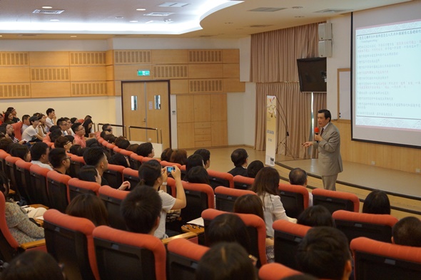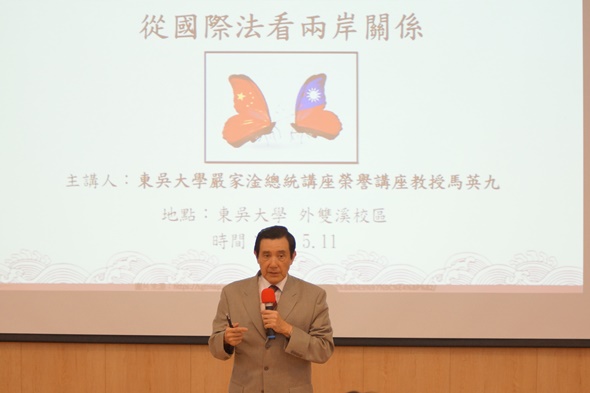 東吳大學「嚴家淦法學講座」馬英九教授,本學期第3場講座「從國際法看兩岸關係」,於106年5月11日下午在本校雙溪校區普仁堂舉行,吸引全校師生熱情參與,現場座無虛席。馬英九教授從國際社會二戰後分裂國家的情形,延伸到我國與中國大陸之間微妙的兩岸關係,內容豐富精彩。