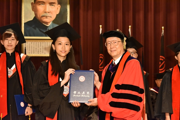 本校105學年度畢業典禮於6月10日和6月11日在外雙溪校區傳賢堂舉行,一連兩日共有六個場次,邀請各學系師生、家長和校友們共襄盛舉,首日登場的是外語學院、法學院與商學院。本校董事會王紹堉董事長、校友總會劉吉人會長(富蘭克林投顧創辦人)等人蒞臨現場,向畢業生送上溫暖的祝福。