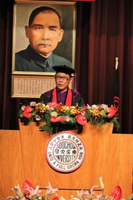 校友總會理事長劉吉人表示,東吳創校百年培養東吳人極致的效率與行動力,期勉畢業生掌握多元知識與機會,來面對未來人生中無限的考驗。外語學院林茂松院長更提及「態度決定高度」,唯有正確的人生態度、基本語言能力及專業素養,同學便得以在人生一途上大展長才。而法學院洪家殷院長冀望同學們完成學業後,能堅持正義,回饋社會,追求理想,迎向未來。