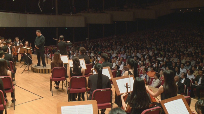 「為什麼大家都看得懂五線譜,有的演奏能令人感動,有的卻讓人覺得他在背譜?重點在於,他們有沒有一個好老師,帶著他們發光發熱!」彭主任引言結束後,本校音樂系管弦樂團便以貝多芬的第三號〈雷奧諾拉〉序曲開場。緊接著,眾所矚目的海克登場,帶來了西貝流士的經典小提琴協奏曲:D小調小提琴協奏曲,其中,豐富的樂團與獨奏對話、強烈的節奏都帶給觀眾空前的聽覺享受。