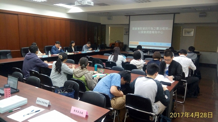 4月28日舉辦第五十五回東吳公法論壇,邀請中國文化大學法律學系李寧修副教授主講「國會獲取資訊行為之憲法框架—以國會調查權為中心」,討論國會調查權法制上的相關議題。由本校程明修教授主持,兩位與談人分別是世新大學法律學系陳淑芳教授、與輔仁大學法律學系陳信安助理教授。本次研討會提供後續討論之基礎,冀望能夠使國會獲取資訊行為以及國會調查權制度更加完善。