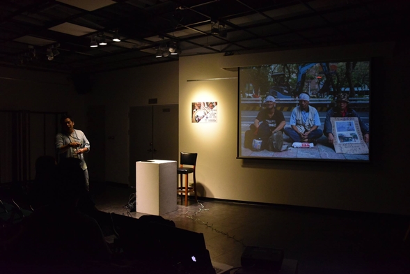 5月26日游藝廣場展覽廳坐滿了聽眾,而大家專注地望向前方聚光燈之處。蘇州攝影學會邀請曾任副總統陳建仁的隨行攝影師李昆翰分享他的影像,他現任上報的攝影記者,以政治、社會為主題,娓娓道出作品後的故事。