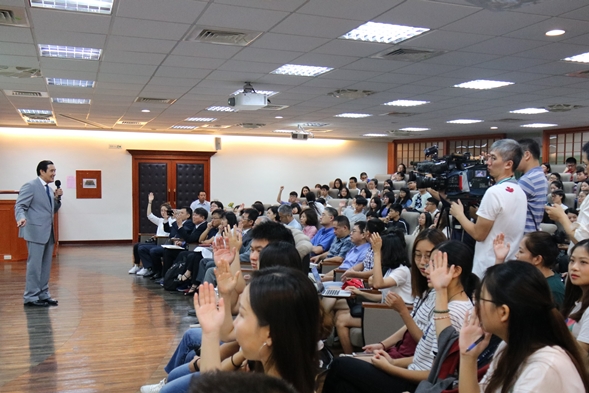 在問答環節中,學生們就課綱改革、釣魚台、兩岸關係等議題發問,馬教授也一一回答,並表示「臺灣國際法地位問題」還有很多重要議題有待探討,請同學們期待11月20日舉辦的第二場嚴家淦法學講座。