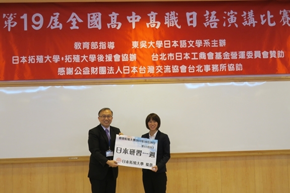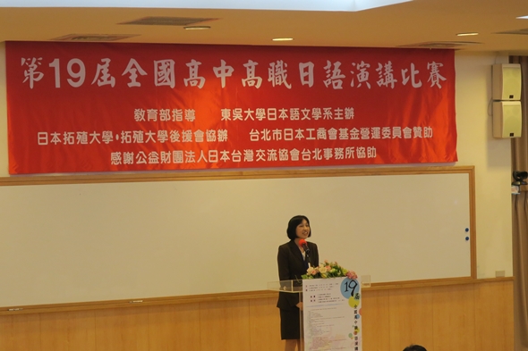 全國高中生日語演講比賽自1999年起,在日本姊妹校明海大學的積極支援下,策劃舉辦。自第9屆改由日本姊妹校拓殖大學及其後援會協助辦理。此次第19屆活動很榮幸地邀請日本交流協會文化室塩澤雅代室長前來參與致辭,並給予參賽學生鼓勵。