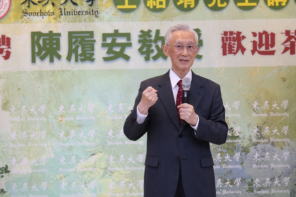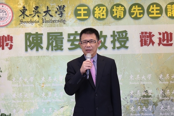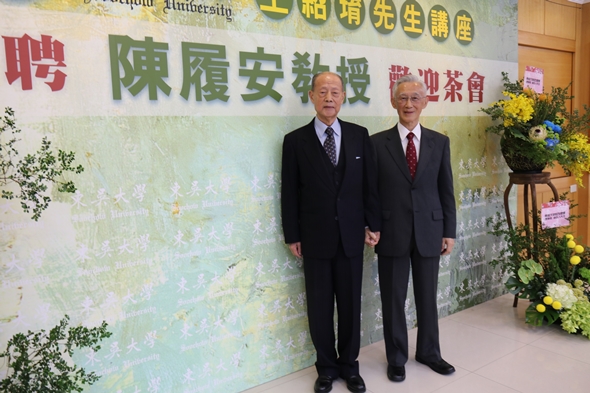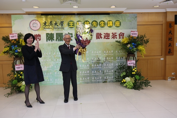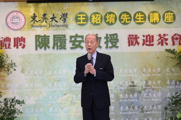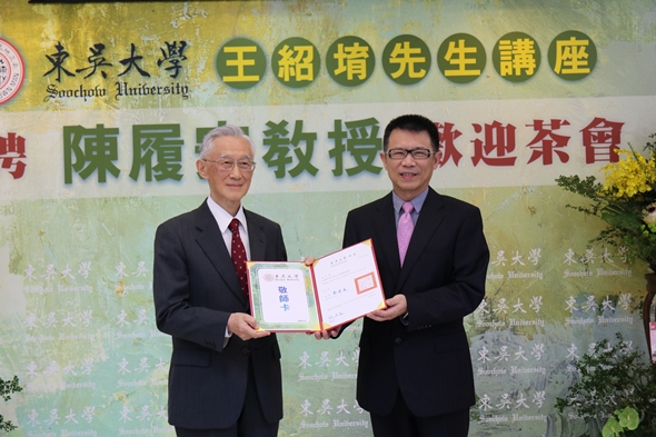 陳履安講座教授表示,多年前有幸和東吳大學王紹堉董事長在其擔任財政部次長時認識,當時因公務與他接觸就感佩他學識豐富、做事明快,處理問題面面俱到,是後輩學習的典範。陳講座教授十分感謝王董事長盛情邀請,使他有機會來到學校和師生分享個人近幾年的研究,他說,獲得聘書不僅是一份榮譽感,更是一份責任感。