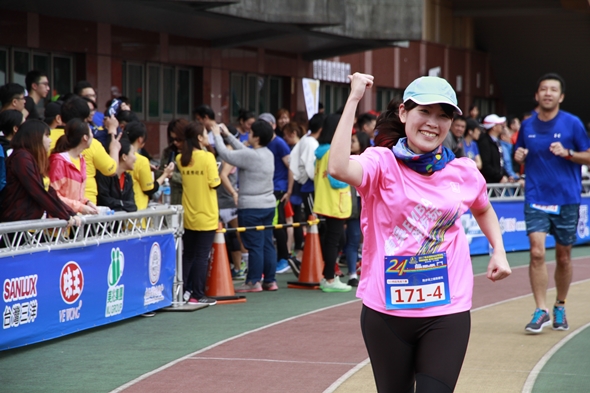 另一位參賽校友彭雅勤學姐(98級企管系畢業校友)強調,「馬拉松就是要鍛鍊意志力的堅持。」堅持慢跑習慣的她表示,自己連續兩年重返母校參與東吳超馬,除了可以獲得豐富的紀念品,每次都會感受到重返青春校園的澎湃心情。她還說,自己在參賽之前都會在社群分享東吳超馬賽事的訊息,鼓勵學弟妹返校一睹賽事風采,賽後她更興致勃勃地前往校友總會攤位,尋找更多曾經的回憶。