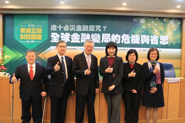 本校企業管理學系於2017年12月27日(週三)舉辦第三季「東吳企管財經講堂」,第二場次主題是《逢十必災金融魔咒?全球金融變局的危機與省思》,由本校法商講座教授陳冲擔任主持人,邀請金融監督管理委員會黃天牧副主委、中華經濟研究院吳中書院長、新光金控風控長儲蓉、News98廣播節目《財經起床號》節目主持人陳鳳馨、東吳大學企業管理學系劉美纓教授,共同探討全球金融變局的危機與省思。