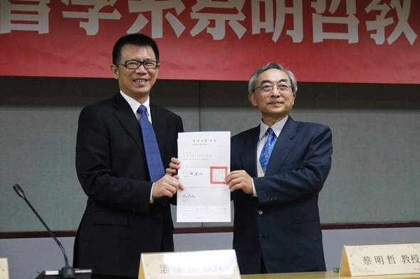 潘維大校長表示,很榮幸能參加蔡明哲教授的榮退茶會活動,蔡教授在本校服務期間不僅致力教學、研發新課程、編製授課講義,更開授「台灣社會史研究」、「社會行銷」與「社會學」等多門課程,門生無數遍及各行各業,個人也是蔡老師當年在法律系開授「社會學」課程的學生之一。潘校長還指出,蔡教授在東吳服務期間,曾擔任多項行政服務工作,除擔任社會系系主任外,還曾擔任本校文學院院長和教務長,十分感謝蔡教授對於本校各方面的卓越貢獻。
