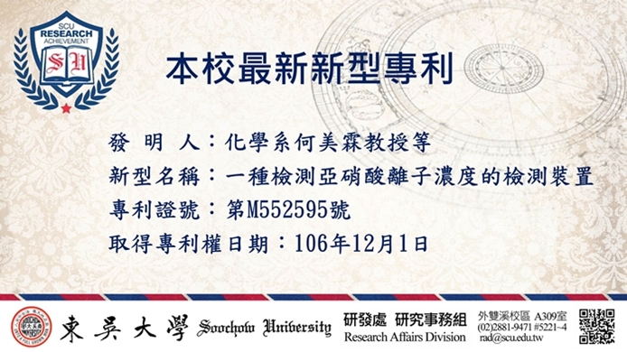 本校最新獲得發明專利1件及新型專利1件,分別是微生物系劉佩珊教授及化學系何美霖教授因執行科技部計畫所衍生之研究成果,分述如下: