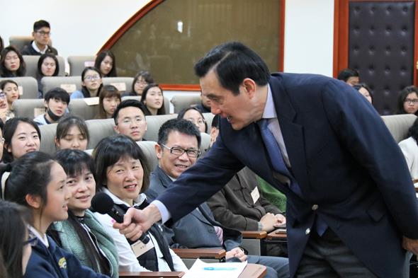 最後,現場同學們踴躍向馬教授提問,其中有位陸生同學詢問馬教授對近期習近平主席修憲的看法,引起現場師生會心一笑,而馬教授則反問她對於是否同意習主席繼續連任下去?同學則回應認為每種制度存在都有合理性和必然性,不可否認的是一黨專制的情況下,大陸經濟和建設上的確有許多提升和進步,對於她的回應,馬教授十分誇讚其對於國際政治的瞭解。每次馬英九教授的演講課程總是吸引許多師生前來一睹風采,而令人期待的提問時間,幽默風趣的馬老師帶領師生們一同腦力激盪,同學們紛紛表示意猶未盡,翹首以待下一次的課程。