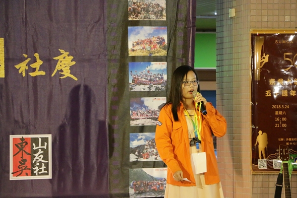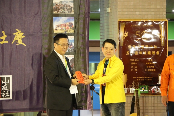 由本校東吳登山社與畢業校友創立的東吳山友社共同舉辦的50周年社慶,於107年3月24日在外雙溪校區望星廣場盛大展開,董保城副校長、王淑芳主任秘書暨社會資源長和近300名校友、同學齊聚一堂,共同歡慶登山社50周年。