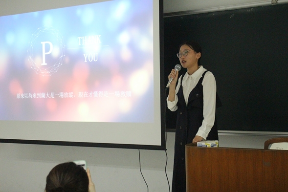 蘭州大學是讀書風氣很好,課間與課外都有良好的學習,使她願意來台灣交換,嘗試去學習不同領域來拓展自己的眼界。最後閆歡同學也推薦大家來蘭州大學交換,不要因為蘭州在內陸地區而不以為意。蘭州大學絕對是一間充滿學習挑戰的優良綜合性大學,有興趣的同學千萬別錯過申請交換機會。