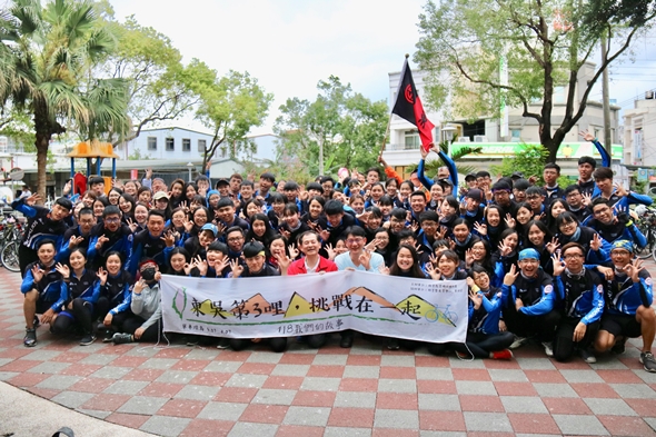 「東吳第3哩,挑戰在一起!」面對自己的親朋好友,118單車環島的學員們在外雙溪校區最後一次喊著口號,為12天的環島之旅畫下句點。本校第6屆百人單車環島活動於107年3月27日至4月7日進行,一共號召百位在校學生挑戰單車環島,此外校友總會今年也特別號召校友加入,舉辦第一屆校友單車環島活動,雙方採反方向進行環島並於高雄會師,也讓環島中的高雄之夜相當熱鬧。