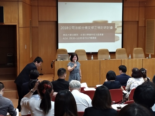 本次東吳大學法律學系中國大陸法律研究中心協同臺灣法學財經法委員會共同舉辦「2018公司法部分條文修正檢討研討會」,會中邀請各位老師就新興制度、現行公司治理和比較法律制度等面向進行發表和討論。