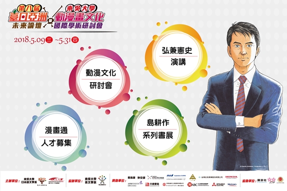 承蒙中文系校友周衡學長將珍藏數十年近一萬冊的漫畫慷慨捐贈,本校於2014年在中正圖書館四樓增設「漫讀區」,積極蒐羅各國漫畫、推廣漫畫閱讀與交流,希望漫畫不僅僅是休閒娛樂的媒介,也可以成為學習研究的文本。本次為探討動漫畫文化風靡全世界的奧秘及展望動漫畫文化的前景,圖書館、日文系與渥美國際交流財團關口全球研究會(SGRA)很榮幸地邀請到日本神級名師漫畫家《島耕作》系列作者弘兼憲史老師於5月25日(五)下午3點在本校外雙溪校區普仁堂以「弘兼憲史x漫畫x學習不思議~漫畫教會我的事(日文題目:漫画から学んできたこと)」為題,分享其漫畫創作的心得,且演講現場將有逐步口譯,並可認證美育活動畢業標準,機會千載難逢不可錯過。