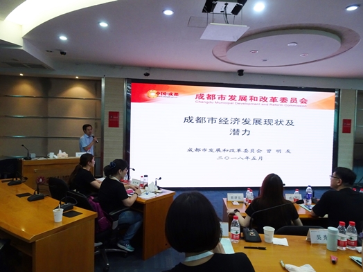 第一天課程上午安排四川大學商學院李光金教授介紹「大陸宏觀經濟形勢與區域發展態勢」,針對當前大陸經濟發展狀況進行討論,並對不同區域的發展態勢做深入淺出的解析;下午由成都市發展和改革委員會黨組成員、副主任曾明友先生主講「成都經濟發展現狀及潛力分析」,介紹成都市的發展潛力和未來經濟發展重點,並分享成都市發展改革中的實際案例。