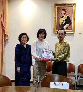 此外,大會亦致贈紀念品予台灣地區學校代表,本校同時回贈禮物,東海大學王茂駿校長、實踐大學陳振貴校長、環球科技大學許淑敏董事長、致理科技大學謝金賢副校長等亦同台受獎。此次汶萊參訪期間,本校亦與諸位校長與學校代表同仁們共同參訪汶萊中華中學,交流海外招生、實習合作、校友服務等議題。