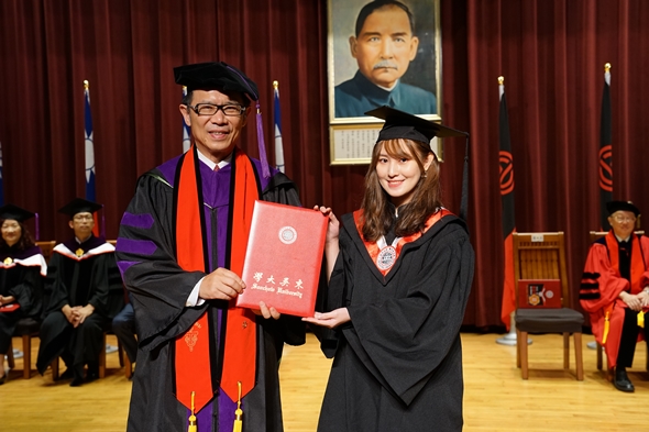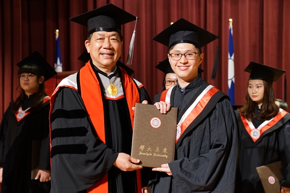 「法律可能讓公平正義得以實踐,也可能讓人身敗名裂。」潘維大校長將這句話送給畢業生,勉勵同學們即使將來掌握了權柄,要分辨是非黑白以外,也別忘記保有一顆關懷慈悲的心。此外,潘校長亦表示,同學們畢業後仍應掌握時事變化趨勢,與時俱進才是不變之道。