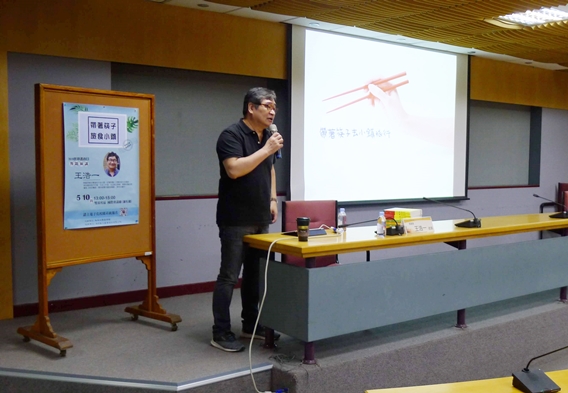 深入大城小鎮的街巷,記錄每一道台灣小吃的樣貌、滋味,享受每樣美食背後的故事,107年5月10日由圖書館主辦的世界書香日專題演講在國際會議廳舉行,邀請生活考古學家王浩一老師,分享在台灣探索的巷弄美食,並且帶領大家一同進入各鄉鎮中,以旅行、吃美食的方式逛生活。