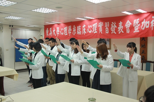 碩士班臨床實習發表會暨加袍典禮於107年6月20日舉辦,當天特別邀請了徐儷瑜主任、張本聖老師及曾幼涵老師為學生披上白袍,給予即將踏入醫院開始臨床實習的學生們指導與鼓勵,而加袍生們也宣示他們將以病人的健康為首要的顧念,並恪遵臨床心理的專業倫理與守則,那一刻,加袍生們好像真正的意識到了自己即將成長,而穿在身上的白袍也乘載了一些無形的重量。
