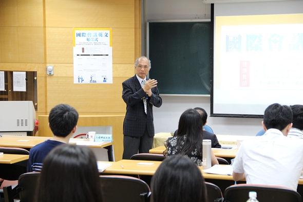為了迎接全球化的時代,本校推廣部於107年6月1日開辦國際會議英文課程,特別邀請四位大師級的講師開班授課,分別為駐WTO代表團的顏慶章大使、前駐美代表陳錫蕃大使、師範大學翻譯所陳子瑋所長及本校華語教學中心王建輝副主任,讓對國際會議有興趣的社會大眾,能透過這九週時間精進自我、面對英文會議不再畏懼、能暢所欲言。