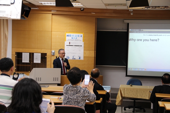 民國60年臺灣退出聯合國至今,除了致力於國際貿易的卓越發展,還要商討成為世界貿易組織會員國的對策。因此,課程將會從「參與者」、「主講人(與談人)」與「主持人」等三種不同角色之常用語介紹開始,想像在外國工作,透過英文交談感受國際的脈動。在提升英文能力的同時,也讓生活變得簡單便利。師大翻譯所陳子瑋所長更藉由問答活動來拉近和學員的距離,了解到學員們的學習動機。其中一位學員針對口音問題發問,陳子瑋所長表示,多和各國人交流切磋,習慣英文腔調之餘,也繫起彼此的友誼,創造無國界的地球村。