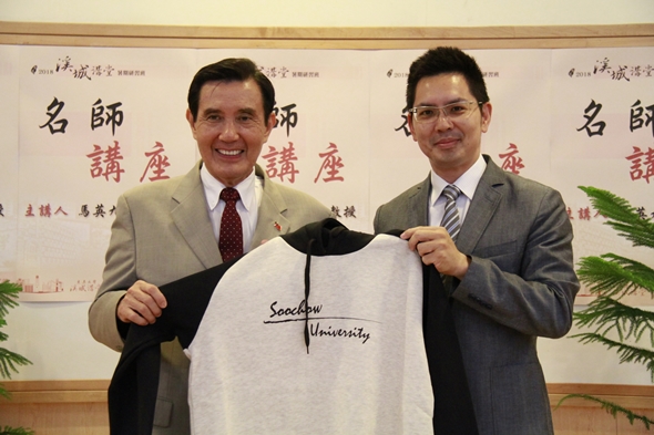 馬講座教授從兩岸的關係的歷史開始談起,他特別提及2015年11月在新加坡舉辦的馬習會,雙方再度肯定「九二共識」是兩岸共同的政治基礎,指出兩岸需要透過不同層面的交流,來建立和平,重申「戰爭沒有贏家,和平沒有輸家」的理念。他也跟同學分享小秘密,馬習會當日,他與習近平先生兩人握手長達81秒,被虧「怎麼握那麼久?」,但他解釋,其實是為了讓現場上百家媒體都能拍到各個角度握手照片的緣故。