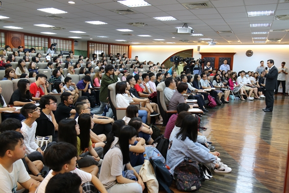 東吳大學自105學年度起禮聘前總統馬英九先生以榮譽無給職方式擔任「嚴家淦法學講座教授」,以每月1場不同主題的演講課程,與本校同學互動對談。馬英九講座教授本學期的第1場演講以「『慰安婦』、戰爭犯與國際法—從『慰安婦』銅像談起」為題,於9月26日上午在本校城中校區實習法庭開講,校內師生報名踴躍熱情參與,現場座無虛席。