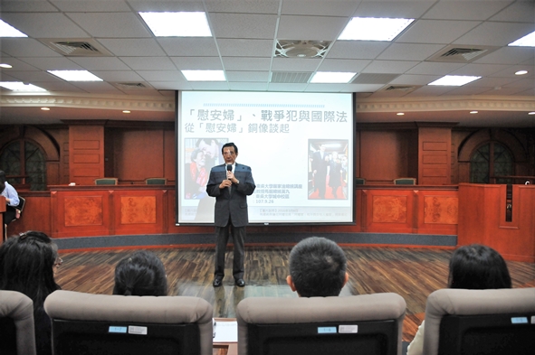 在最後的互動問答環節中,同學們把握機會踴躍提問,馬講座教授有問必答,深入剖析回應同學們的問題,並不斷強調捍衛「慰安婦」尊嚴的重要性,同時,他也指出「不管人多人少,不對的事情就要追究到底」充實的課堂內容,不僅讓同學們對「慰安婦」議題有更多了解,也希望同學們在課堂之後,不忘歷史教訓。
