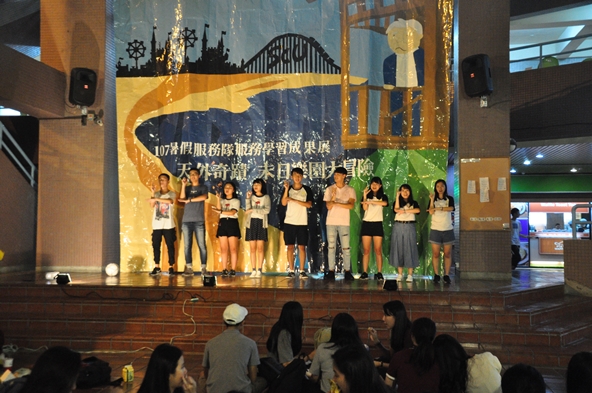 本校107年暑假服務隊計有5支國內隊及3支國外隊於各地進行服務,社團同學以實際行動關懷社會弱勢,從服務及反思過程中,體驗人生的意義。靜態展於9月17日至27日於雙溪藝廊展出,而動態的聯合服務學習成果發表會則於9月21日晚上在望星廣場盛大展開,超過80位同學蒞臨現場共襄盛舉。