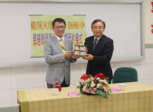 本校於107年10月26日與臺北市十信高級中學簽訂「教學策略聯盟暨住宿大樓租賃協議」,建立雙方教學、研究與行政資源之整合運用及互惠共享機制,同時承租十信高中學生宿舍,提供東吳學生住宿需求,期望未來能將大學師資與教學資源導入高中教育,以大手攜小手方式協力精進彼此教育目標,為學生創造更多元的學習環境。
