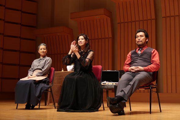 創立於2011年的臺灣表演藝術團體—演摩莎劇團10月18日帶著契訶夫的劇本《熊》來到本校松怡廳演出。演出前,舞臺上的表演道具,暗下來的環境燈光,以及早早入座的觀衆們期待的眼神,給這場舞臺劇帶來一絲神秘色彩。
