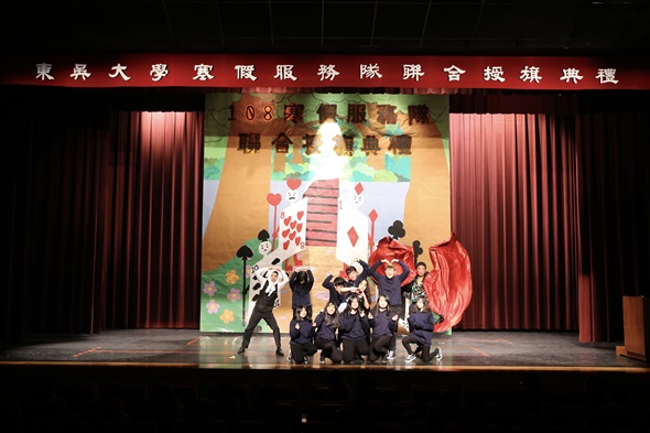 108年寒假授旗典禮,於108年1月14日在外雙溪校區傳賢堂舉行,本次活動以「魔境尋旅」為縱軸、「莫忘初衷」為橫軸,期盼每位服務員能夠秉持初衷,將半年努力累積的成果展現。