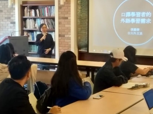 107學年度第一學期共有5場演講:國立臺灣師範大學翻譯研究所蘇正隆老師,同時也是書林出版董事長,從筆譯及出版來談〈語言、文化與公共標示之翻譯〉;本校英文系蔡嘉瑩老師,以翻譯員所握有的重責,論〈姓名漢譯:詮釋的權利/力〉;國立臺灣大學翻譯碩士學位學程張嘉倩老師,就翻譯者的英文聽力及口譯能力,談〈口譯學習者的外語學習需求〉;國立臺灣大學翻譯碩士學位學程范家銘,以第一線口譯員的視角及定位,談論〈承先啟後?一位中生代口譯員的反思〉;國立臺灣師範大學翻譯研究所廖柏森老師,以翻譯理論及研究方法的面向談〈翻譯實徵研究方法的特質與展望〉。演講內容涉及筆譯、口譯、出版實務及理論方法,精彩充實,引人入勝。