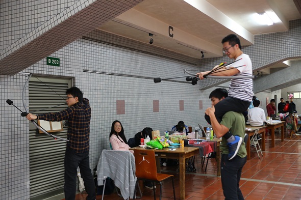 學生會與群美中心合辦校慶園遊會多年,今年共有25個校內社團參與擺檯,並有COSTCO、MY PLUS大學雜誌等校外商家進駐,一同共襄盛舉。現場攤位琳瑯滿目,除了販售美食、紀念品之外;動漫社社員更打扮成動漫人物,吸引往來人群的目光;一箭入魂社也提供射箭體驗,讓師生能多認識及接觸射箭運動。群美中心亦特別設立「文創絹印」擺檯,讓參與者藉由DIY絹印「特製手工帆布袋」,留下屬於自己的東吳回憶。