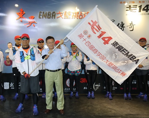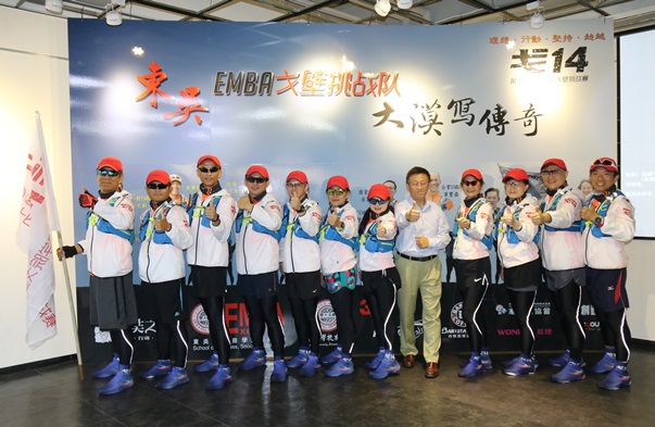 去年東吳大學EMBA戈13團隊用體力、耐力、意志力,本著「一起出發、一起到達」的精神,穿越茫茫戈壁大漠,榮獲全員完賽的「沙克爾頓獎」、「奮進獎」、「最佳公眾人氣獎」(港澳台及海外地區參賽影片投票第一名)及「最佳風範獎」4個大獎,成績斐然。今年代表出賽挑戰的東吳大學EMBA戈14團隊,於108年4月20日下午齊聚東吳大學游藝廣場,由東吳大學董保城副校長授旗,戈14團隊宣誓將傳承榮耀,透過雙腳貫徹「理想、行動、堅持、超越」永不放棄的精神。