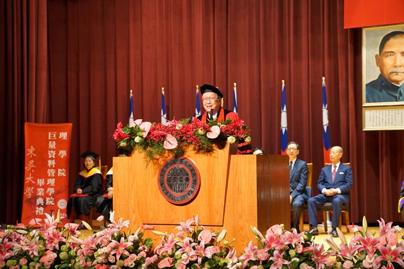 鳳凰花開,驪歌初唱,畢業生滿懷對師長及父母的感激之情,即將帶著驕傲及些許忐忑的心離開學校。前方也許未必是光明坦途,但回首在東吳大學的歲月,這些回憶會是支持畢業生們走下去的能量;發揮所學並關懷社會,發揚校訓精神,讓「東吳人」這個稱呼伴隨著畢業生前往下一個人生階段。