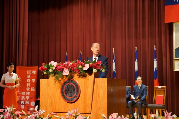 巨量資料管理學院張善政榮譽院長期許畢業生,在未來的職場及人生中,不管是否從事本科專業的工作,都應具備宏觀的國際視野;對於任何事,只要認真學習,都有成功的機會。張榮譽院長勉勵畢業生,不要被困境打倒,勇於接受任何挑戰。