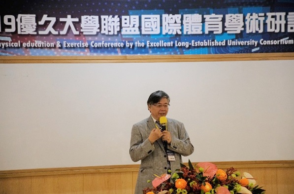 潘維大校長在開幕典禮代表學校感謝教育部、體育署、大專院校體育總會對本次國際研討會的支持,且歡迎國內外運動健康領域學者和體育界師長蒞臨,並對支持本活動的優久大學聯盟體育委員會各校體育主管表達謝意,更表示本校將提升學生體適能列為校務展發指標之一,研討會所討論之各專題,將幫助本校體育室教師精進學能,進而向全校學生傳遞最正確及先進的運動健康新知。